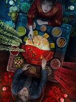 和男友走進一家火鍋店。【活人吃紅鍋,死人吃白鍋。】巨大的招牌擺在店內。 我的笑容凝固在店員端上鴛鴦鍋的那一刻。 宋澤林伸出他慘白的手,扒拉著面前的白鍋。 他笑瞇瞇地看著我。 「寶寶,你在看什麼?」
