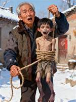 村裡大豐收的那年,臘八節。 我奶在灶房煮臘八粥的時候,我爺在牆頭逮到一個賊。 六七歲的模樣,沒穿衣裳,一身死老鼠味,瑟瑟縮縮的。 我奶說一個光腚崽娃子,放了算了。 那賊聽了咧嘴一笑,露出一口白森森的尖牙。 「方牙吃草,尖牙吃肉!」 我爺一腳把他踩進雪窩子裡,聲音發顫: 「千萬放不得!這東西吃死屍肉長大的,是土匪養的覓糧獸!」 「放了他,全村連條狗都活不下來!」