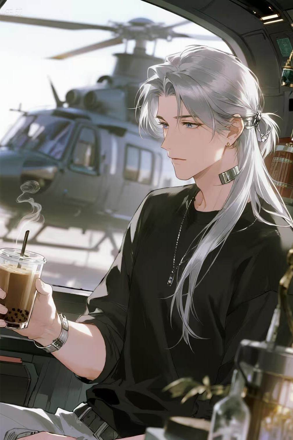 玄夜換休閒裝,瀑布般髮,被根髮帶束。