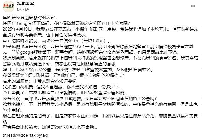 面對這樣的問題,與其互相指責,更需要建立透明的消費文化。無論是店家明確標示價格,或消費者理性反映意見,都能讓台灣的餐飲環境更加良性發展。