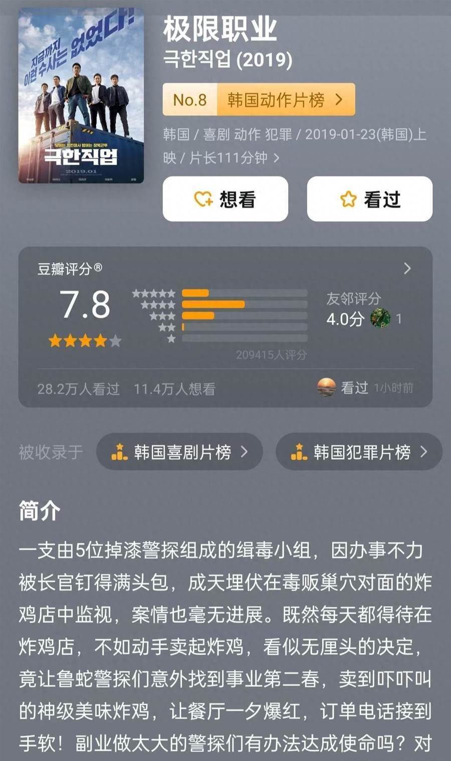 推薦理由:刑警改行賣炸雞,黑幫吃上癮求包月!年度票房冠軍!五個廢柴警察為蹲點毒販盤下炸雞店,結果秘製水原排骨味炸雞火遍全國!黑幫大佬天天點外賣,毒販在VIP包廂嗑瓜子看他們忙到飛起。最瘋的是決戰戲——當警察掄著平底鍋追兇,外賣摩托在高速上漂移,觀眾笑到從座椅出溜到地上!