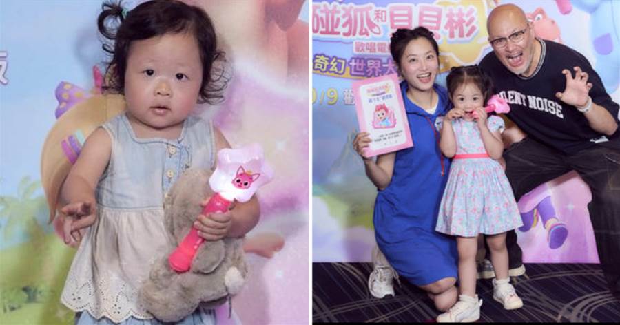 ▲趙小僑和劉亮佐夫婦帶著典典寶寶,一起看《碰碰狐和貝貝彬歡唱電影:奇幻世界大冒險》。(圖/甲上提供)