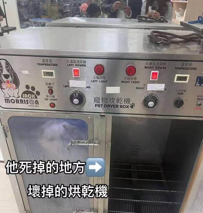 不久前,美金像往常一樣被主人送到東森寵物澄清店洗澡。沒想到這次普通的美容行程,竟成為最後的旅程。店家最初僅告知「烘乾機時間設定錯誤」,直到主人堅持報警調閱監視器,才發現真相遠比說法殘酷。