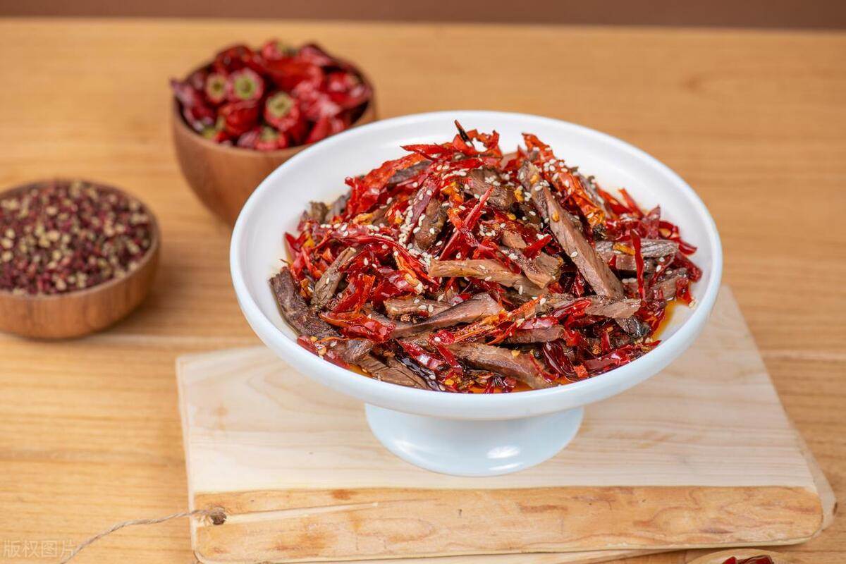 四川自貢鹽幫菜的代表,以「味厚香濃、鮮辣刺激」聞名。冷吃牛肉用干辣椒、花椒猛火爆炒,麻辣中透出醬香,冷食更顯風味。自貢人一年四季離不開這道小吃,甚至逢年過節也要囤上幾斤,佐酒下飯皆宜。