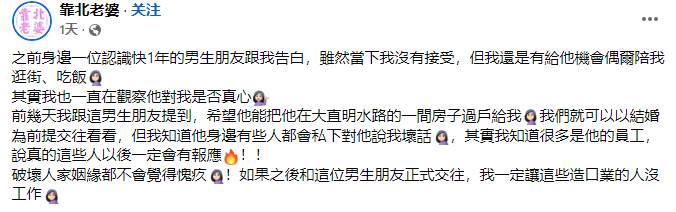 近日網路一則「要求男生朋友過戶大直房子才願交往」的貼文引發全民撻伐,發文者理直氣壯要求價值數千萬房產的態度,被網友封為「最狂拜金女」。這起事件在燒了三天後出現驚人逆轉,自稱是男方親友與公司員工的網友紛紛出面爆料,真相完全超乎眾人想象。
