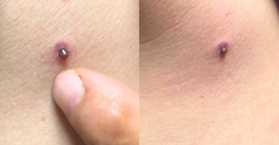 據王先生回憶,爬山時曾穿過灌木叢,回家洗澡時發現腹部有顆「黑痣」,觸摸時有輕微刺痛感。他隨手摳掉后,傷口很快結痂,便沒放在心上。