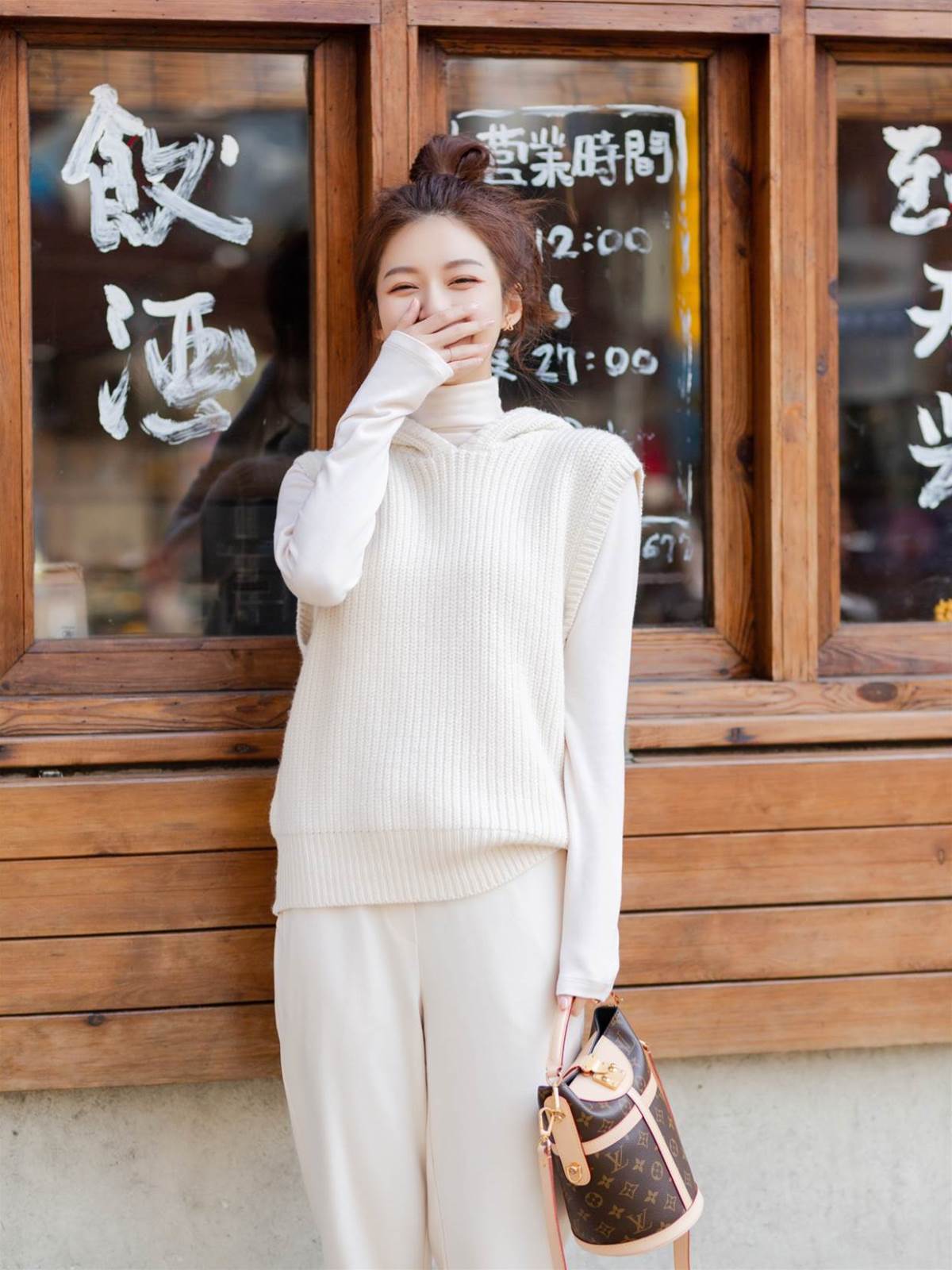 對于面對鏡頭害羞的女生,可以不要比剪刀手拍照姿勢,讓自己擺拍一個捂嘴偷笑的姿勢,這樣拍出來更顯羞澀和可愛,還能起到瘦臉自然的效果,一舉兩得,拍照很漂亮。
