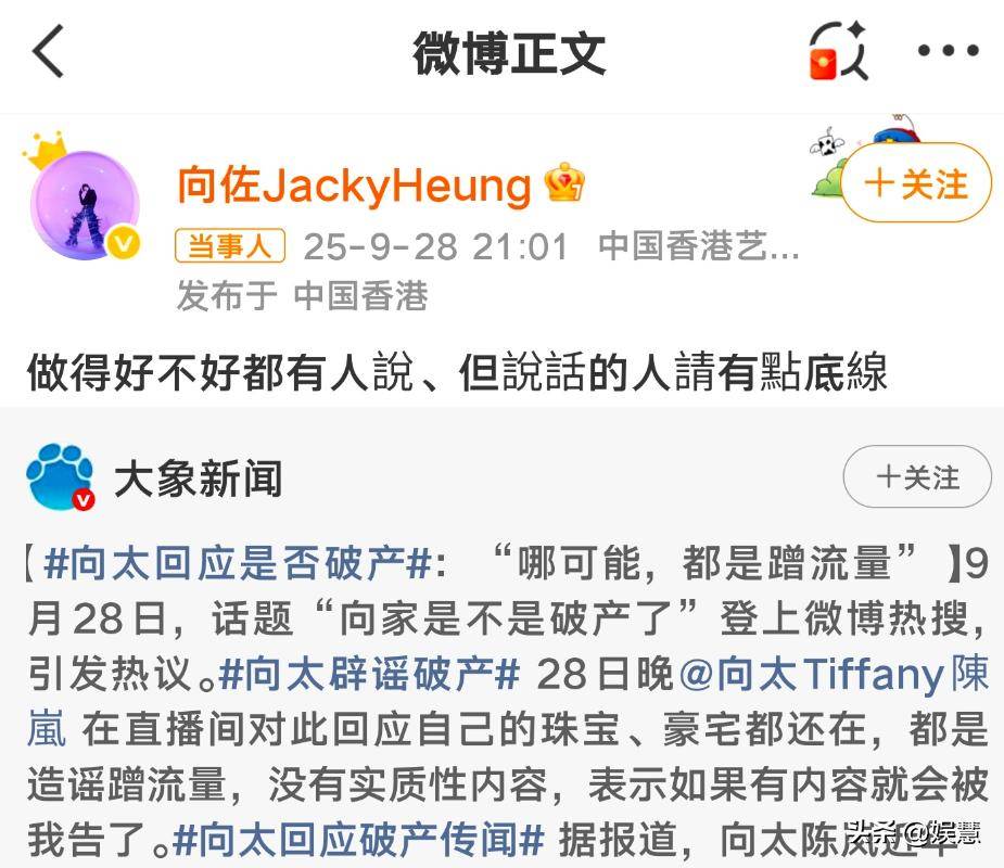 9月28日,#向家是不是破產了#的話題登上了微博熱搜,引發了網友的關注。