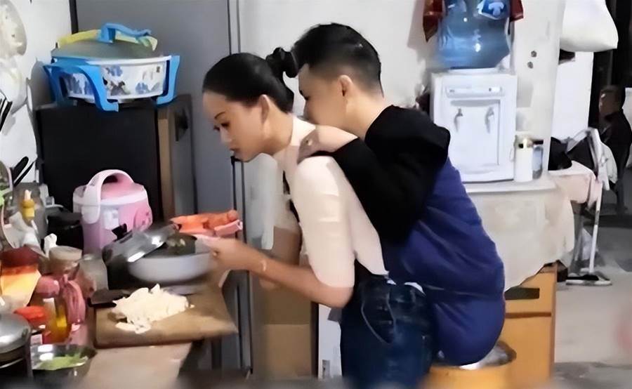 2019年,他們一家三口上街,阿嬌背著阿波,左手牽著女兒,有人經過感觸于他們的生活狀態,將他們一家的視訊發到了網上。