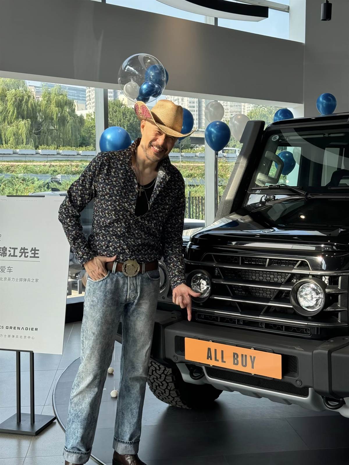為了祝賀他喜提新車,銷售經理還送了他一個寫著「ALL BUY」字樣的車牌,發音類似他飾演的經典角色「鰲拜」,真的太有心了!