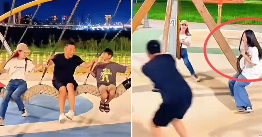 騎到附近的公園后,一家四口又玩起了飛椅,四個人各坐一把椅子,小楊阿姨在旁邊幫忙轉動,玥兒和霖兒笑得尖叫連連。