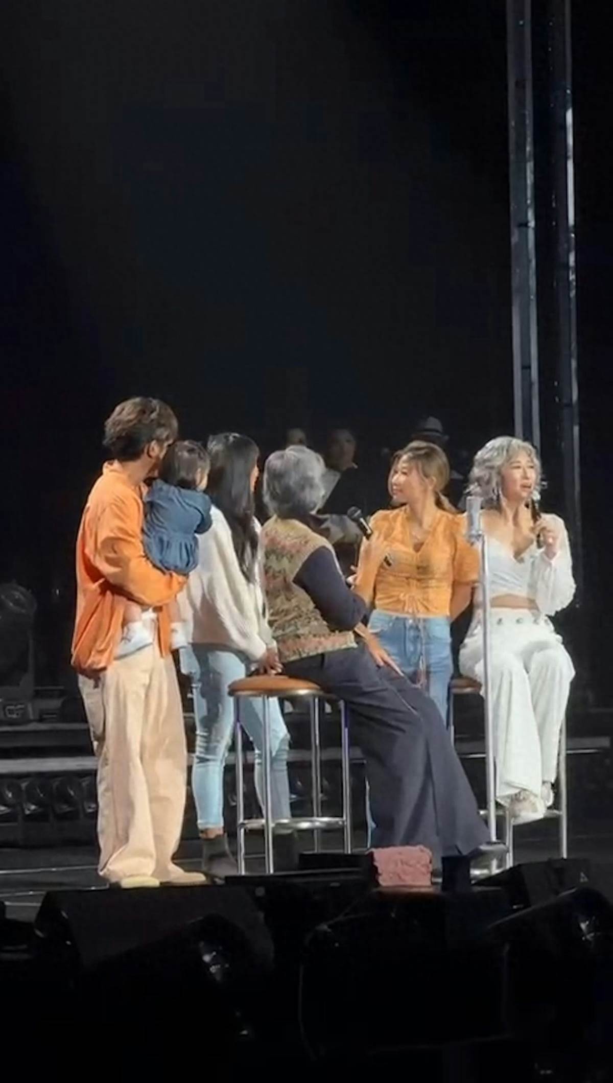 在林子祥78歲生日當晚,隨著演出環節的推進到了慶生的環節,連日來都沒有嘉賓的演唱會出現了四個嘉賓,這四個人正是林子祥的親人。事前林子祥并不知情,兒子林德信帶著妻子現身在舞台上,林德信的妻子抱著一歲半的女兒林明,女兒林德懿也來了,林子祥受寵若驚。