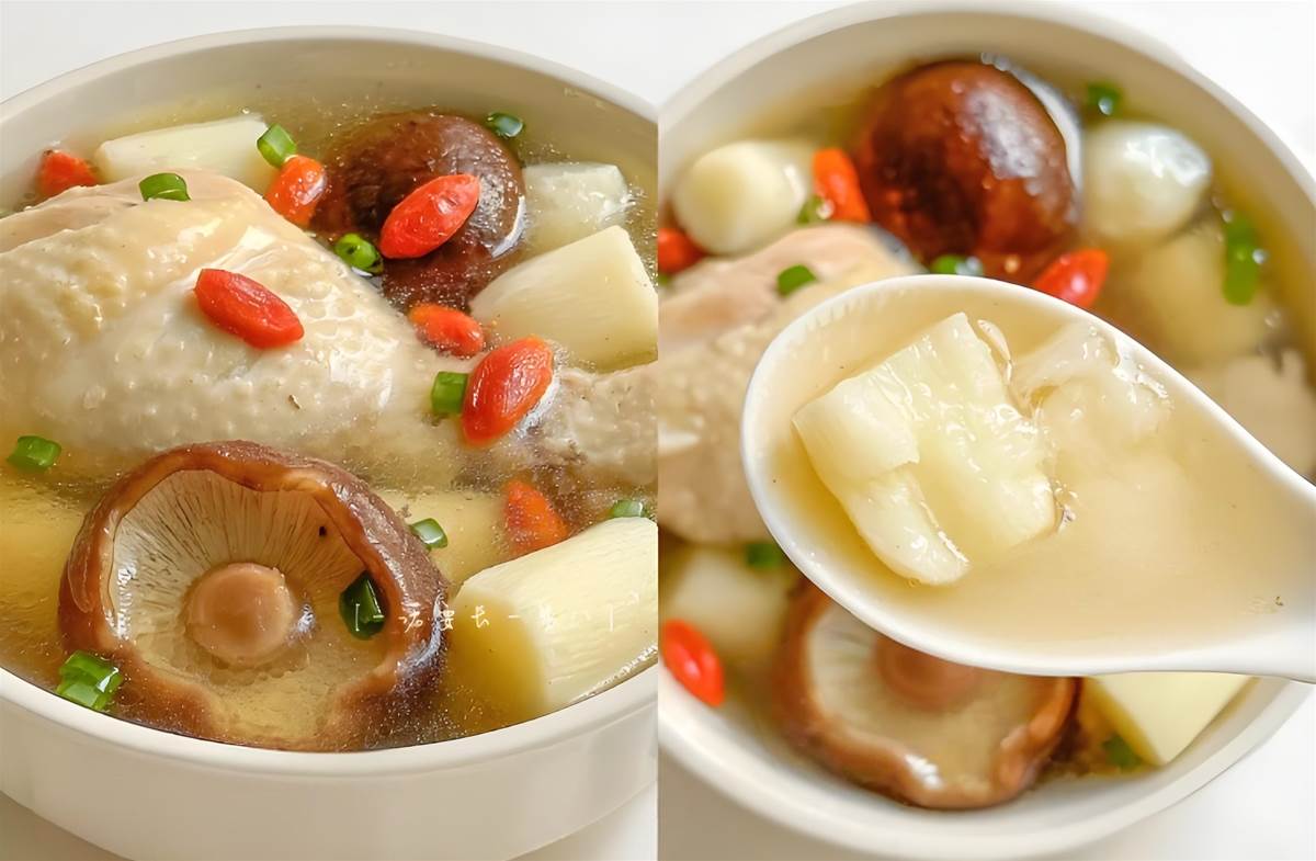 食材:雞腿1只、干香菇2朵、山藥50g、姜片2片、枸杞少許做法: