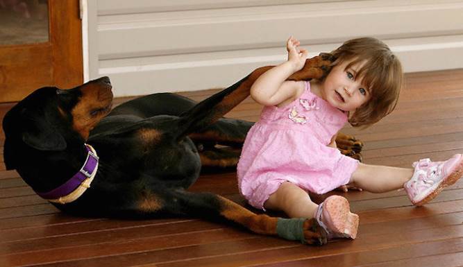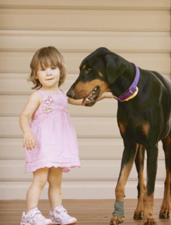 根據《Honest To Paws》報導,凱瑟琳·斯維利奇 (Catherine Svilicic) 和老公領養一隻名為「坎恩 (Khan) 」的杜賓犬,坎恩受到前主人凌虐後拋棄,所幸被斯維利奇一家領養。坎恩才來家裡4天,斯維利奇夫婦也很放心讓1歲5個月大的女兒夏洛蒂 (Charlotte) 和大狗狗一起在院子裡玩耍。