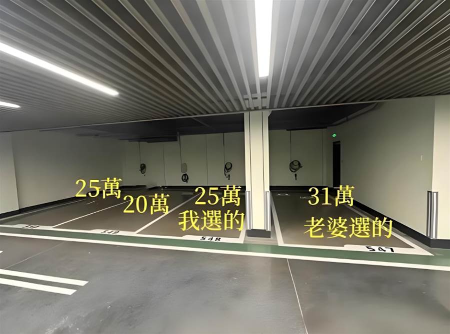 這名丈夫在貼文中描述,當初看中548號普通車位,妻子卻堅持要多花錢購買相鄰的547號。看著平面圖上兩個相鄰的號碼,他氣得在論壇發文直呼:「這不是人傻錢多嗎?」沒想到專業網友們的回應讓他瞬間改觀。有從事建築業的網友私訊指出:「三面靠柱的獨立車位在市場上非常搶手,轉手至少溢價三成以上。」