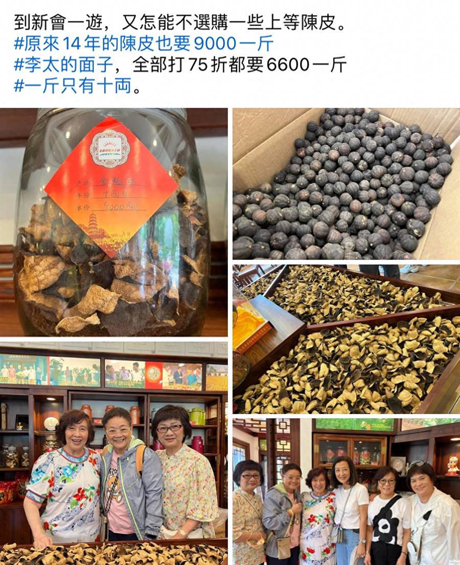 比起一身富貴的裝扮,真正彰顯出她闊氣的地方應該還是在行程中購買了陳年干貨這件事上——眾人在參觀醬油廠房的同時,也有機會購買一些珍藏了許久的陳年干貨。根據隨行的資深媒體人汪曼玲透露,大家有意一同購買一些上等的陳皮,而這些陳皮已經有14年的歷史,所以叫價不菲,一斤的市面價要9000元,後來全靠李錦記遺孀李蔡美靈的面子打了7.5折,折后價一斤也要6600元。陳皮的價格不便宜,不過識貨的馬海倫并不手軟,她沒有透露買了多少斤,只不過難得遇到好貨色,當然要多買一點作為珍藏,所以相信他也買了不少。