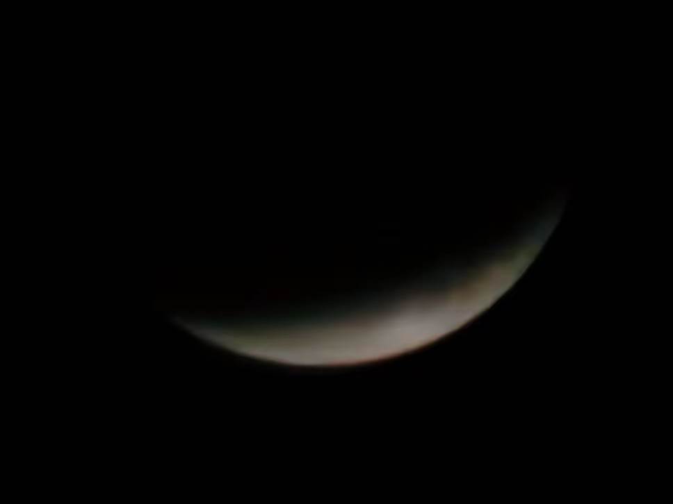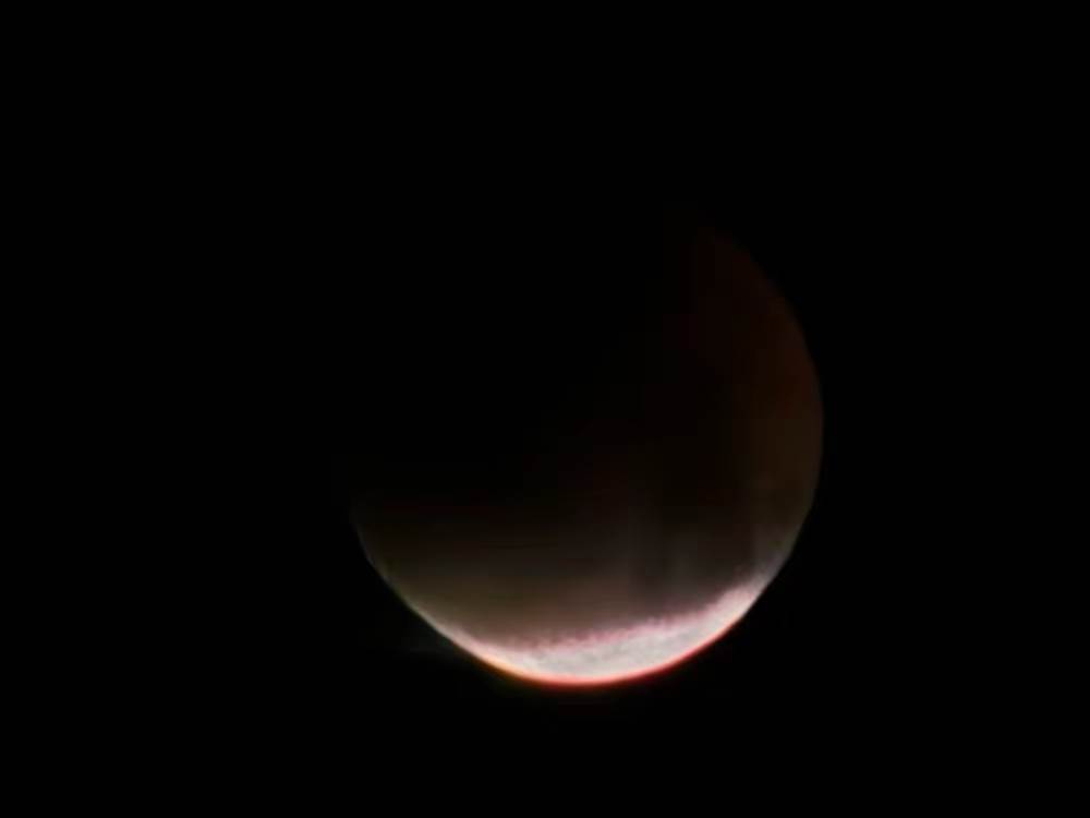 2. 初虧:月球開始進入地球的本影,標志著偏食階段開始。月亮的左邊開始出現明顯的缺口。