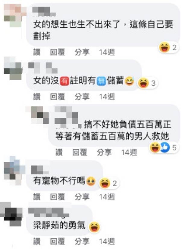 對此,大多網友都搖搖頭,認為女子「根本是癡人說夢」,紛紛開酸「睡覺吧!夢裡啥都有」、「我有這麼多錢,為什麼不直接找個年輕的?」、「到底是我老了跟不上時代,還是這社會瘋了?」、「原來是在做夢」、「靈骨塔一堆符合的可選擇」、「明天來去朝聖一下」、「在演哪一齣?」、「梁靜茹的勇氣」。