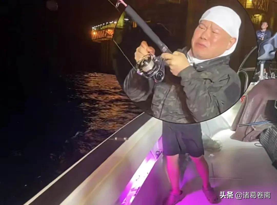 到了晚上,岳雲鵬出來活動了,原來他喜歡釣魚。