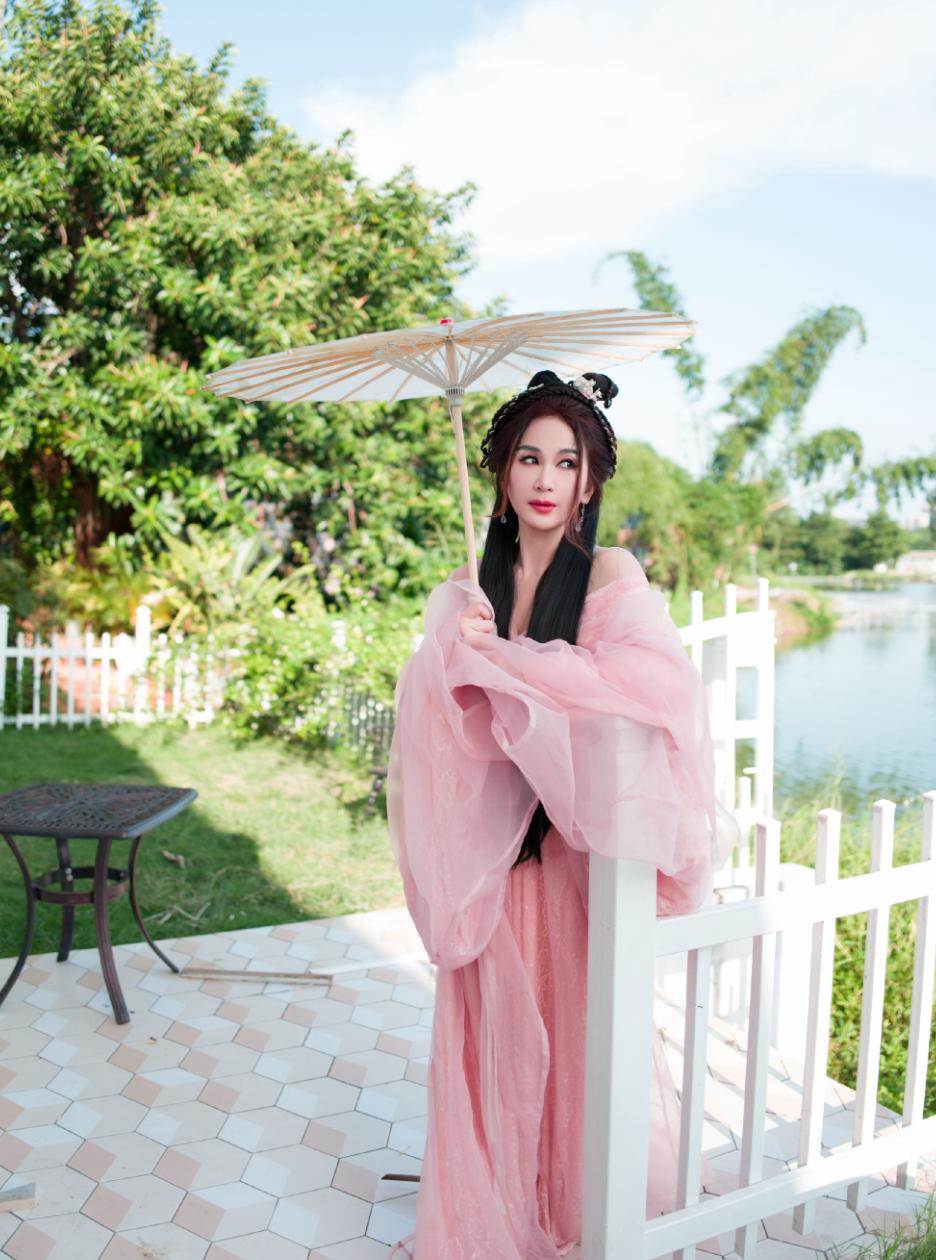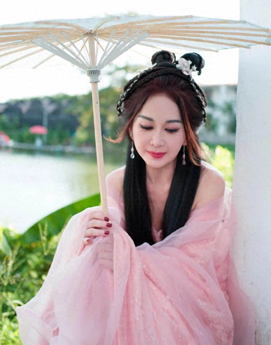 59歲的她穿著粉色紗衣,手持油紙傘站在古典庭院里,梳著24年前《封神榜》里蘇妲己同款髮型,眉梢眼角的嫵媚勁兒和當年幾乎一模一樣。