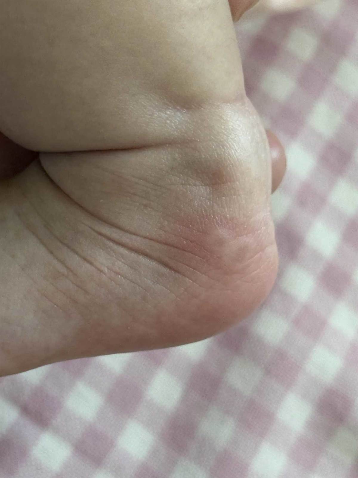 這天,鄰居王阿姨來串門時,無意間看到5個月大的小樂樂光著腳丫在爬行墊上玩耍,頓時嚇得臉色發白。她一把抱起樂樂,仔細檢查孩子嬌嫩的腳底板——只見兩只小腳的后跟處,竟然長出了兩片明顯的硬繭,摸上去粗糙厚實,完全不像嬰兒應有的柔嫩肌膚。