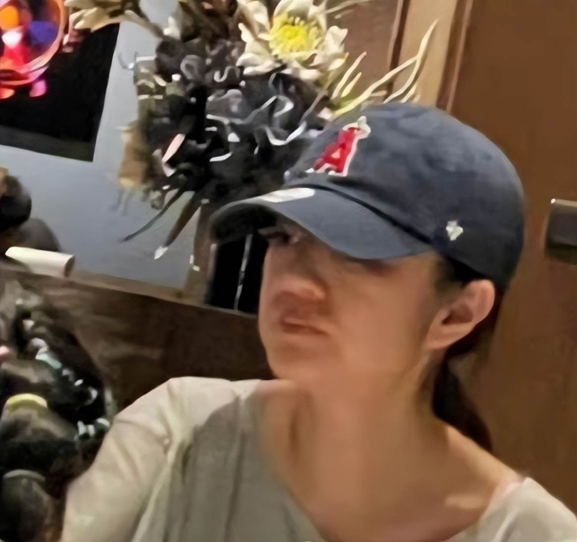 可能是怕被認出,她穿著灰撲撲的T恤,戴著一頂帽子,且將帽檐壓得很低,時不時就四處觀看,生怕被發現。
