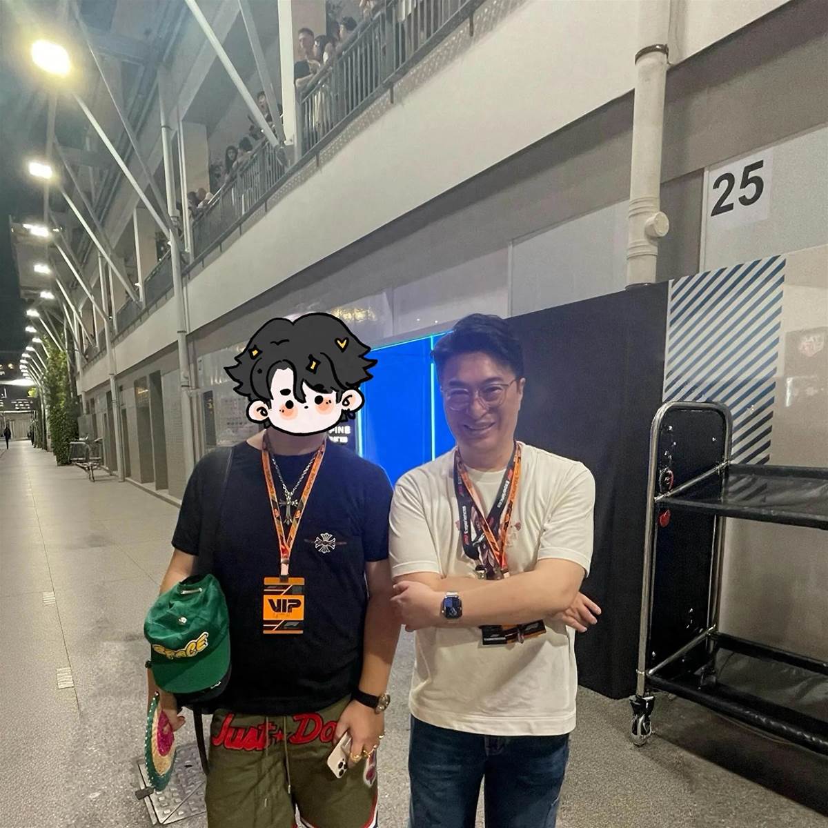 10月6日,有網友在社交平台曬出的在F1新加坡站賽場偶遇徐子淇和老公李家誠的照片,夫婦二人打扮休閑看賽車,心情貌似都不錯。