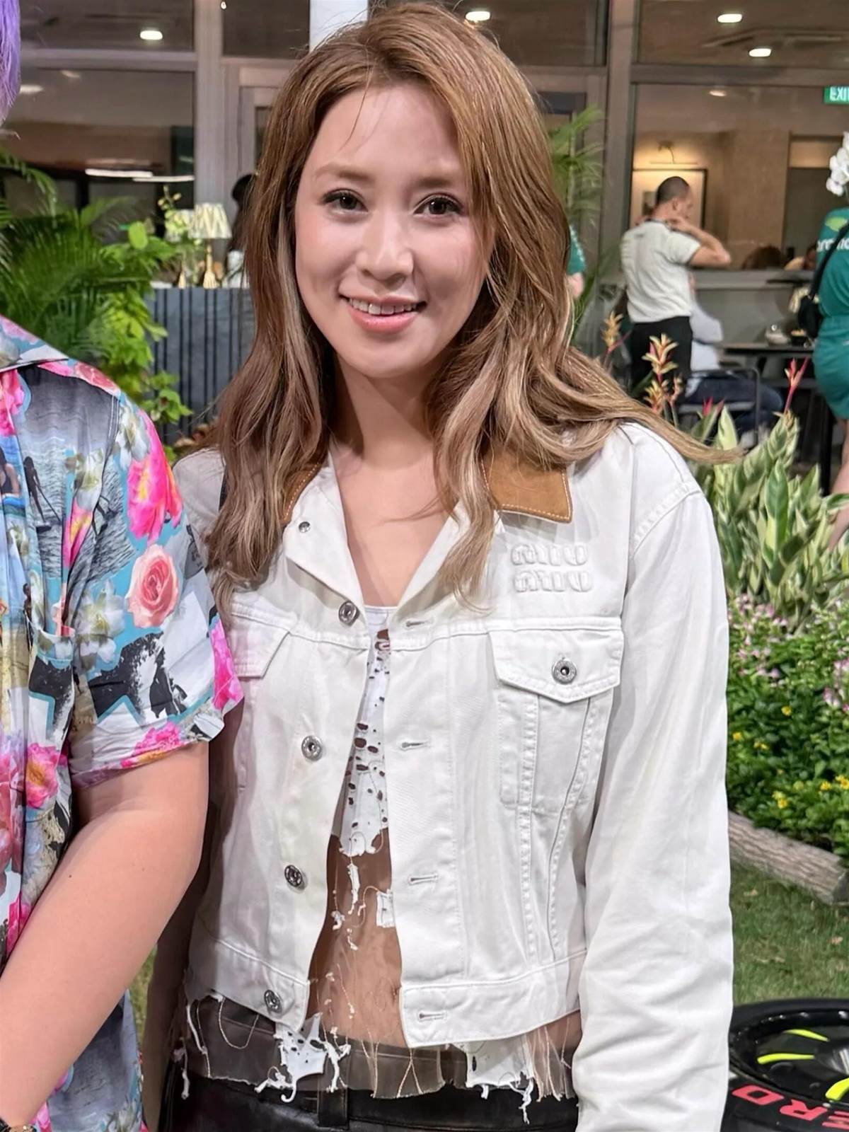 徐子淇的打扮更是休閑,她頂著一頭金色長發,身穿白色短款外套和半透蕾絲內搭,再搭配一條黑色短皮裙,辣妹裝打扮減齡顯年輕。今年42歲的她顏值在線,笑容好甜,身材更是超瘦,穿露臍裝能看到平坦小腹,完全不敢相信是四個孩子的媽媽,保養得超好。