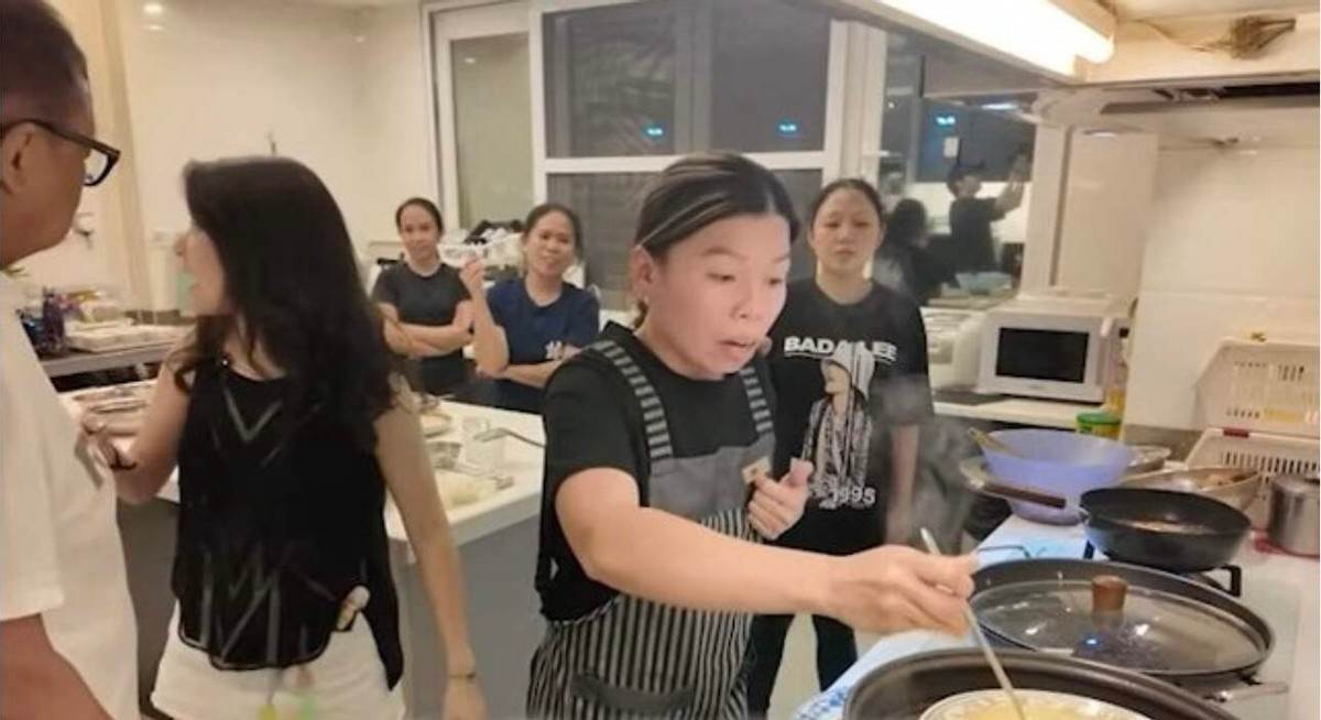在煮飯的時候,還有很多工人姐姐進出廚房,甚至有工人姐姐幫許紹雄解決下廚的問題,可以看得出許紹雄平時在家是不怎麼下廚的,應該是工人煮好飯給他。