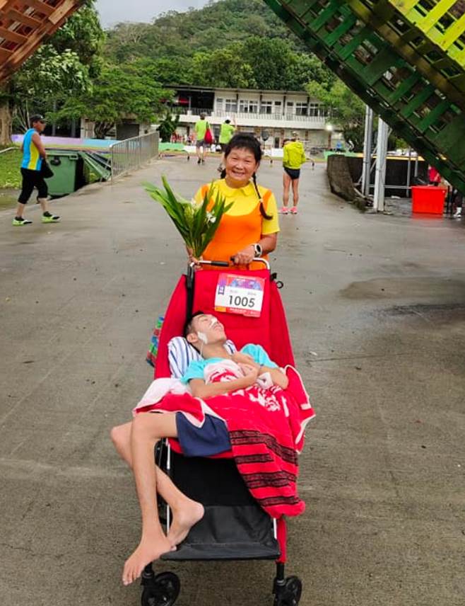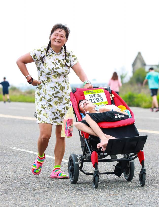 在小比快滿18歲前夕,母子倆的人生出現新的契機。有朋友邀請陳嘉齡參加馬拉松,還保證會幫忙推小比,平時沒有運動習慣的陳嘉齡答應了。未料比賽當天竟被朋友放鴿子,陳嘉齡獨自咬牙完成10公里的賽事,誤打誤撞開始了馬拉松人生。從2017年到2021年間,母子倆就已經累積參加162場馬拉松比賽了。