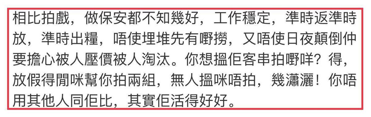 前陣子,有媒體拍到正在香港將軍澳一處豪宅做保安的李中寧,媒體採訪他時,當初的迴避、躲閃、怨氣統統不見了,取而代之的是歷經滄桑後的坦然和淡然:不跟別人比,活得挺好!